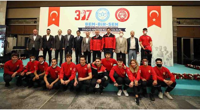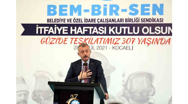 Marmara Belediyeler Birliği ve Kocaeli Büyükşehir Belediye Başkanı Doç. Dr. Tahir Büyükakın, Bem-Bir-Sen’in İtfaiye Haftası kutlamasına katılarak bir konuşma gerçekleştirdi. İtfaiye Teşkilatının kuruluşunun 307’nci yılı nedeniyle yapılan kutlamaya Bem-Bir-Sen Genel Başkanı Levent Uslu, Başiskele Belediye Başkanı Yasin Özlü, İtfaiye Daire Başkanı Doğan Kara, Hizmet-İş Sendikası Kocaeli Şube Başkanı İdris Ersoy, Memur-Sen’e bağlı sendikaların şube başkanları katıldı. Kocaeli İtfaiyesinin kendilerinin yüz akı olduğunu söyleyen Başkan Büyükakın, “11 yılda 14 bin 337 insanımızı boğulmaktan kurtardık. Sahillerimizde verdiğimiz cankurtaranlık hizmetimizle yine sadece bu yıl bin 695 vatandaşımızın boğulmasının önüne geçtik. Kocaeli İtfaiyesi, Türkiye’ye örnektir” dedi.