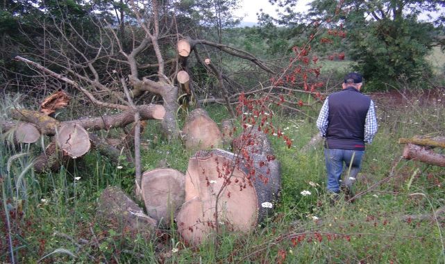 Geçtiğimiz ay Uzuntarla Mahallesi Göl mevkiindeki tarlasına giden Ali Toker (65), dedesinden yadigar kalan yaklaşık 150 yıllık iki çınar ağacının kesildiğini gördü. Neye uğradığını şaşıran Toker, soluğu jandarmada aldı. Şikayette bulunan Toker, olayı gerçekleştiren kişilerin bulunmasını istedi.