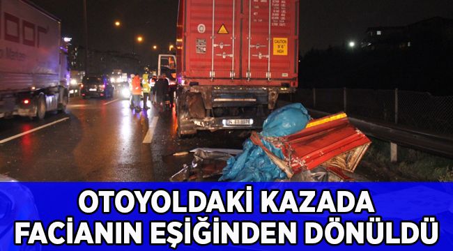 Kaza, saat 23.00 sıralarında TEM Otoyolu Çınarlı mevkiinde meydana geldi. Edinilen bilgiye göre, Ankara istikametine seyir halinde olan E.B. idaresindeki 34 DIE 389 plakalı Scanıa marka sac levha yüklü tır, arıza sebebiyle emniyet şeridinde park halinde olan F.Y. yönetimindeki 34 DN 3789 plakalı Ford marka tıra çarptı. Çarpmanın etkisiyle E.B. idaresindeki tırın dorsesinde bulunan sac levhalar yola savruldu. Aynı yönde ilerleyen M.Ç.’nin kullandığı 54 AFM 334 plakalı Fiat marka kamyonet ise yola sac levhalara çarptı.