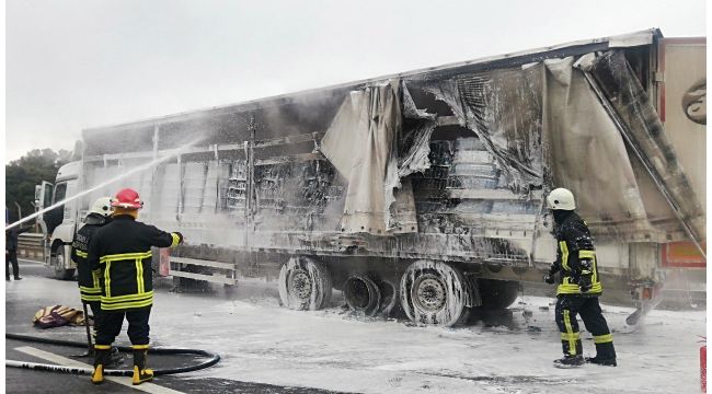 Olay, Kocaeli’nin Gölcük ilçesi D-130 Karayolu Halıdere mevki'inde meydana geldi. Edinilen bilgilere göre, Ramazan Budak idaresindeki ambalajlı su yüklü 10 ED 911 plakalı tır, Karamürsel istikametinde seyir halindeyken bir anda, aracın dorsesinin tekerlek kısmından alevler yükselmeye başladı. Durumu fark eden Budak durumu hemen 112 Acil Yardım ekiplerine bildirdi. İhbar üzerine olay yerine itfaiye ve polis ekipleri sevk edildi. Kısa süre sonra olay yerine intikal eden itfaiye ekipleri alevlere müdahale ederek kısa sürede kontrol altına aldı.