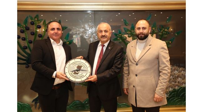 Gebzeli gazeteciler Başkan Büyükgöz’e konuk oldu. Türkiye Gazeteciler Federasyonu (TGF) Genel Başkan Yardımcısı Levent Altun ve Gebze Gazeteciler Cemiyeti Başkanı Ahmet Oğuz, Gebze Belediye Başkanı Zinnur Büyükgöz’e makamında konuk oldu.