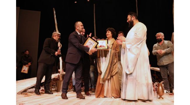 Burak Çodur’un Mesnevi’den uyarlayarak yazdığı Birkan Görgün’ün yönetmenliğini üstlendiği “Aradığın Seni Arayandır” oyunda Mevlana’dan sunulan kesitler seyirciden tam not aldı. Oyun sonunda Başkan Vekili Yaşar Çakmak, oyunun yönetmeni Birkan Görgün’e, içerisinde oyunun afiş görselinin bulunduğu bir çerçeve hediye etti.