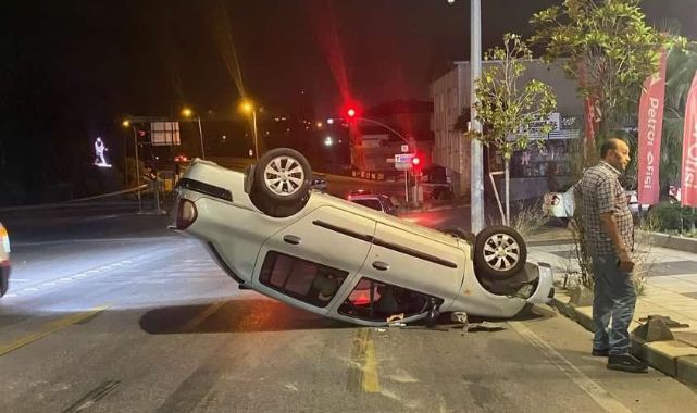 Aydınlatma direğine çarpan otomobil takla attı