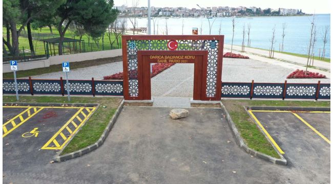 Kocaeli ve İstanbul Anadolu Yakası’nın gözde eğlence merkezlerinden olacak Darıca Balyanoz Koyu Sahil Parkı’nda Kocaeli Büyükşehir Belediyesi ekiplerinin özverili çalışmaları devam ediyor. Aydınlatma işlerinin bitmesinden sonra Darıca Balyanoz Koyu giriş kapısı ve korkuluk montajları da tamamlandı. Kentsel donatı elemanlarının da konulduğu parkta güzel görüntüler ortaya çıkmaya başladı.
