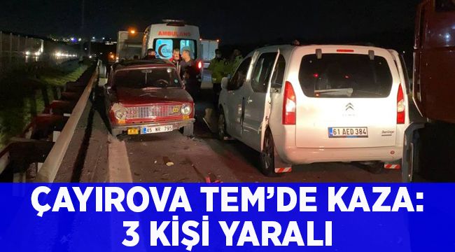 Çayırova İlçesi TEM Otoyolu’nda bariyere çarpıp savrulan otomobil ile hafif ticari araç çarpıştı, kazada, 3 kişi yaralandı.
