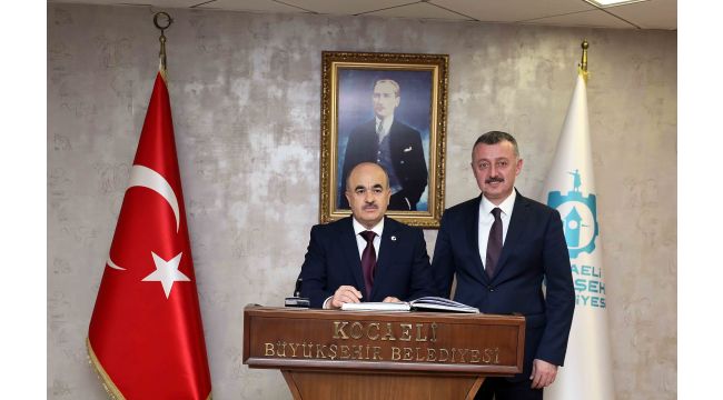 Marmara Belediyeler Birliği ve kocaeli Büyükşehir Belediye Başkanı Doç. Dr. Tahir Büyükakın, Düzce Valisi Dr. Zülkif Dağlı’yı makamında konuk etti. Nazik ziyareti nedeniyle Vali Dağlı’ya teşekkür eden Başkan Büyükakın, Kocaeli’de gerçekleştirdikleri çalışmalar hakkında da bilgi verdi. Büyükşehir Belediyesi’nin şeref defterini imzalayan Vali Dağlı, Büyükşehir Belediyesi Başkanı Büyükakın’a görevinde başarılar dilemeyi ihmal etmedi. Birliktelik yapılan görüş alışverişin ardından sona erdi.