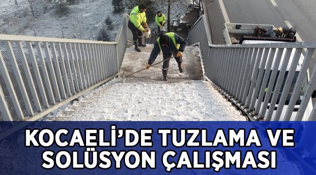 Ülke genelinde olduğu gibi Kocaeli’de de kar yağışı yüksek kesimlerden başlayarak, il genelinde etkisini gösteriyor. Kocaeli’nin Gebze ve İzmit başta olmak üzere birçok noktasında karla mücadele eden Kocaeli Büyükşehir Belediyesi ekipleri, buzlanmaya karşı tuzlama, yaya üst geçitlerinde ise solüsyon çalışması yapıyor.