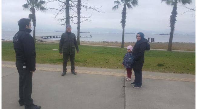 Koronavirüs ile mücadelede ellerin yıkanması, kalabalık ortamlara girilmemesi ve dışarıda sosyal mesafenin korunması büyük önem taşıyor. Zabıta Daire Başkanlığı bünyesinde görev yapan Güvenlik Şube Müdürlüğü ekipleri, park ve sahillerde hava almak için yürüyüş yapan vatandaşlara uyarılarda bulundu. Vatandaşlara kalabalık oluşturmamaları ve aralarındaki sosyal mesafenin korunması hakkında bilinçlendirme çalışması yapıldı.