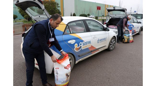 Kocaeli Büyükşehir Belediyesi saha ekipleri, araçlarında sokak hayvanları için mama bulunduruyor.