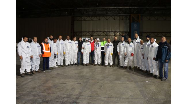 Büyükşehir Belediyesi’nin 276 kişilik dezenfektan timi yeni güne Uluslararası Fuar Merkezi’nde hazırlandı.