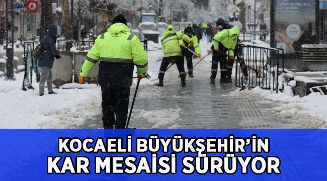 Bölgemizi etkisi altına alan yoğun kar yağışı nedeniyle şehirde olumsuzluk yaşanmaması, günlük hayatın kardan etkilenmemesi için gece gündüz çalışan Kocaeli Büyükşehir Belediyesi, yeni haftaya da kar mesaisiyle başladı. Geceden başlayan çalışmalar sabah da devam ederken yaya üst geçitleri, merdivenler, duraklar ve yürüyüş yolunda çalışmalar devam etti. Şehrin yüksek kesimlerinde ise yol açma, tuzlama ve küreme işlerine ara verilmedi.