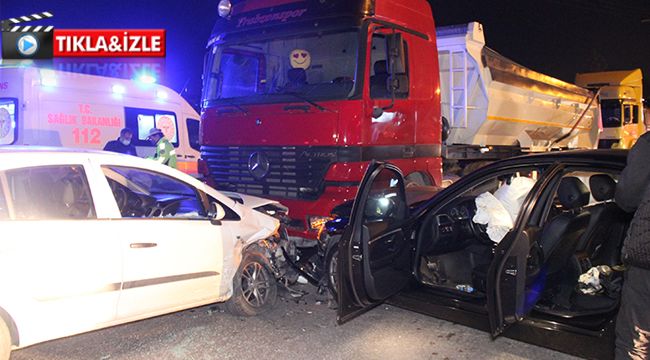 Çarpışan iki otomobil sürüklenerek tıra çarptı: 2 yaralı