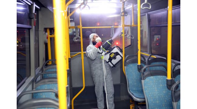 Kamu kurum ve kuruluşlarına ait hizmet binaları, ibadethaneler, STK ve dernekler, sağlık kuruluşları ve vatandaşların sürekli kullandığı parklar, duraklar gibi alanlarda dezenfekte çalışmalarını tamamlayarak tedbirler alan Çayırova Belediyesi, özel halk otobüslerinde de uygulama gerçekleştirdi. Vatandaşların yoğun olarak kullandığı toplu taşıma olan özel halk otobüslerinin içinde özel solüsyon kullanan ekipler, koltuklar başta olmak üzere direk ele temas eden bölgelerde de detaylı dezenfekte uyguluyor.