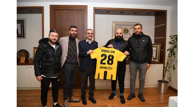 Görüşme sonrasında Menderes Spor Kulübü Başkanı Murat Babaoğlu, maçlarını izlemeye davet ettiği Başkan Çiftçi ‘ye, üzerinde ismi yazan 28 numaralı Menderes Spor forması hediye etti.