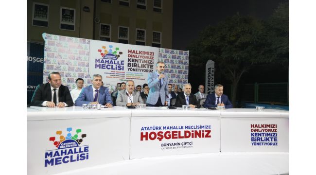 Yunus Ergüz İlkokulu bahçesinde düzenlenen Atatürk Mahallesi danışma Meclisi’ne Başkan Çiftçi’nin yanı sıra belediye başkan yardımcıları, birim müdürleri, AK Parti İlçe Başkanvekili Aşkın Duman, MHP ilçe Başkanı Yunus Emre Düzdaban, belediye meclis üyeleri, mahalle muhtarları ve vatandaşlar katıldı.