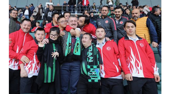 Marmara Belediyeler Birliği ve kocaeli Büyükşehir Belediye Başkanı Doç. Dr. Tahir Büyükakın’ın davetlisi olarak Kocaelispor’un şampiyonluktaki en yakın rakibi esenler erokspor maçını izlemeye gelen özel bireylerin sevinci ve yeşil siyahlı renklere olan sevgisi dikkatlerden kaçmadı. Kocaelispor’un rakibini 2-0 yendiği karşılaşmayı Büyükşehir Belediyesi’nin destekleriyle Kocaeli’de kamp yapan Down Sendromlular Futsal Milli Takımı oyuncuları da takip etti. Karşılaşma boyunca heyecanıyla maçı protokol tribününden adeta yaşayan Mücahit Açıkgöz ile birlikte toplam on dört engelli bireyin müsabakadaki heyecanları görülmeye değerdi.