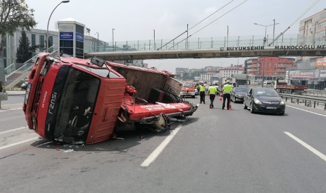 Gebze ilçesinde arıza yapan otomobile arkasından gelen sepetli vinç çarptı. Vincin devrildiği kazada yaralanan olmadı.