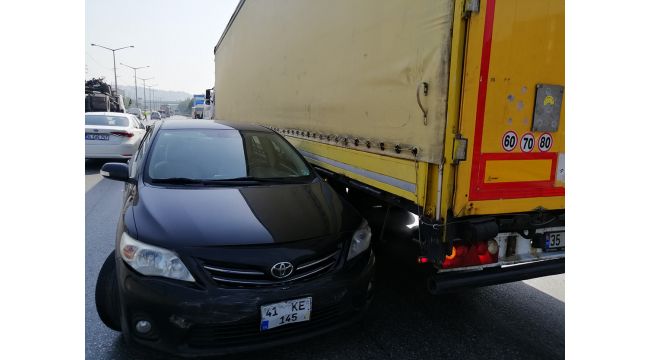 Kaza, Kocaeli'nin İzmit ilçesi D-100 Karayolu Ankara istikametinde meydana geldi. Edinilen bilgiye göre, Ankara istikametinde seyir halinde olan Metin Bulut idaresindeki 35 HD 8313 plakalı Volvo marka tır, kör noktasına giren ve sürücüsü öğrenilemeyen 41 KE 145 plakalı Toyota marka otomobil çarpıştı. Tır çaptığı otomobili metrelerce sürükledi. Kazada otomobilde bulunan 2 vatandaş yaralandı.