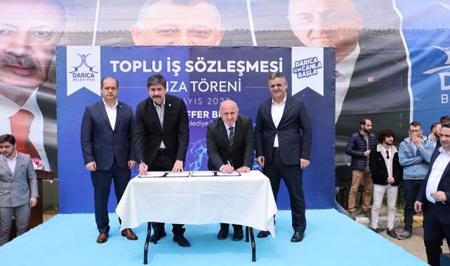 Darıca Belediyesi’nde uzun süredir devam eden toplu iş sözleşmesi görüşmeleri tamamlanırken anlaşmanın ardından imza töreni düzenlendi. İşçiden yana tavır alan ve işçilerin yüzünü güldüren bir sözleşmeye imza atan Darıca Belediyesi’nde işçilere yönelik toplu iş sözleşmesi ile memurlara yönelik sosyal denge protokolü imzalandı. Oldukça coşkulu bir şekilde gerçekleşen ve yüzlerce işçinin yer aldığı imza törenine Darıca Belediye Başkanı Muzaffer Bıyık, Memur-Sen Genel Başkan Yardımcısı ve BEM-BİR Sen Genel Başkanı Levent Uslu, BEM-BİR Sen Kocaeli Şube Başkanı Mehmet Gökkaya, Hizmet-İŞ Kocaeli Şube Başkanı Muharrem Subaşı, AK Parti Kocaeli Milletvekili Adayı Sami Çakır, MHP Kocaeli Milletvekili Adayı Yudum Kaşıkçı, AK Parti ve MHP İlçe Başkanları ile yönetimleri, meclis üyeleri, iş ve işveren sendikası temsilcileri ile çok sayıda işçi katıldı.