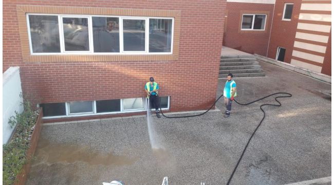 OKUL BAHÇELERİ YIKANARAK TEMİZLENDİ