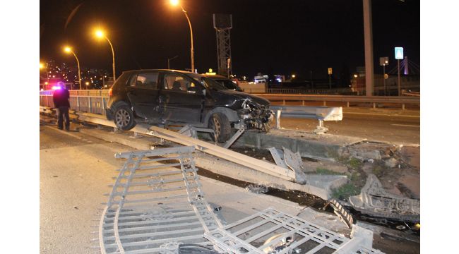 Demir korkulukları parçalayıp refüje çıktı:1 yaralı