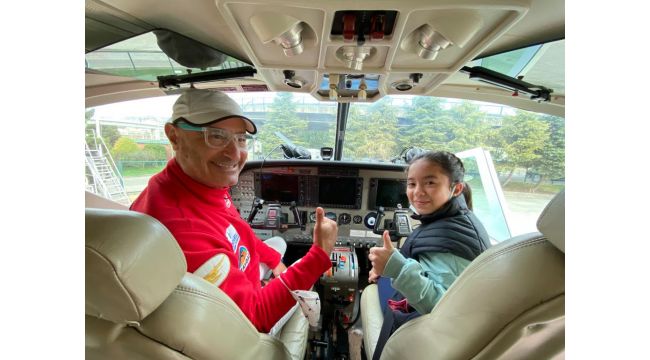 Annesi ve babasıyla geldiği Sekapark sahilindeki istasyonda pilot Hakan Osanmaz ile tanışan küçük Deniz Kayra, ilk önce uçağın etrafında hayranlıkla dolaştı. Uçakla ilgili sorular soran Deniz Kayra, kendisini bekleyen sürprizden habersizdi. Pilot Osanmaz kendisini arayan Başkan Büyükakın’ın Deniz