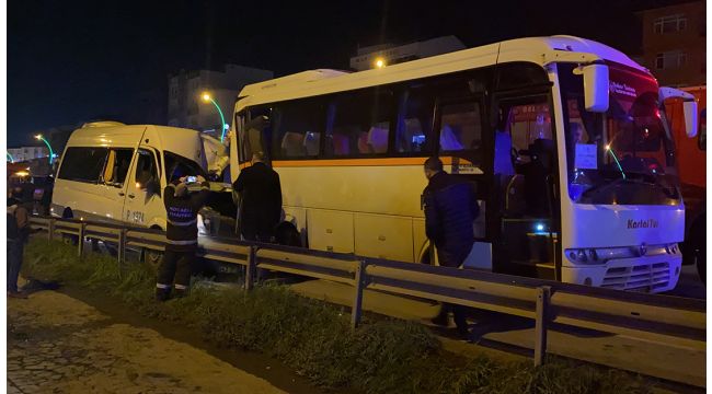 Dilovası ilçesi D-100 Karayolu’nda iki işçi servisinin çarpışması sonucu 10 kişi yaralandı. Ekipler, servisin içinde sıkışan sürücüyü kurtarabilmek için zamanla yarıştı.