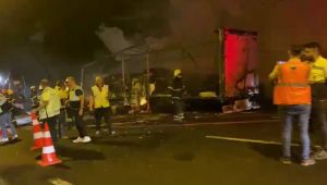 Balataları ısınan tırın lastiği yandı