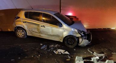 Otomobille çarpışan beton mikseri köprüden uçtu