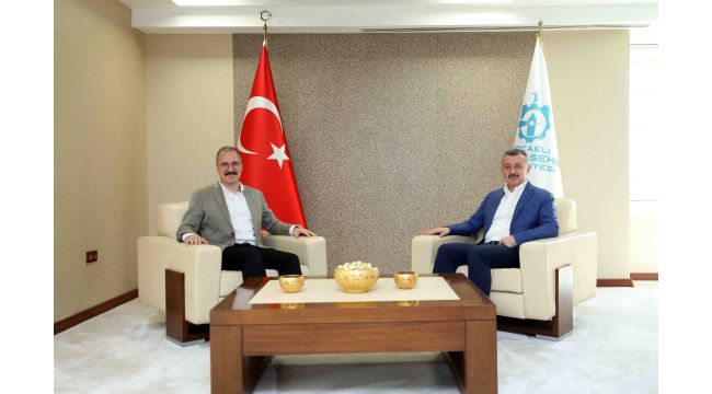 Marmara Belediyeler Birliği ve kocaeli Büyükşehir Belediye Başkanı Doç. Dr. Tahir Büyükakın, Mersin’in silifke ilçesine atanan İzmit Kaymakamı Ersin Emiroğlu’nu makamında konuk etti. Yeni görev yeri nedeniyle Kaymakam Emiroğlu’na başarılar dileyen Başkan Büyükakın, nazik ziyaretleri içinde teşekkür etti. Görev süresi boyunca İzmit’e verdiği hizmetler için Kaymakam Ersin Emiroğlu’na ayrıca teşekkür eden Başkan Büyükakın, günün anısına hediye de takdim etti.