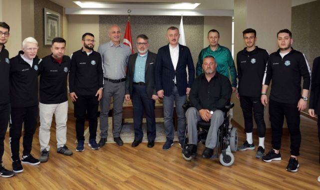 Kocaeli Büyükşehir Belediye Başkanı Tahir Büyükakın, Gölcük Engelliler Gençlik Spor Kulübü Başkanı Mevlüt Önerbay ile sporcular ve teknik heyeti makamında konuk etti. Kocaeli’nde engellilerin spor yapmasının hem fiziksel hem de psikolojik açıdan birçok fayda sağladığının önemine vurgu yapıldı. Sportif başarının önemli olduğunun ancak bunun yanında asıl olanın engelli bireylerin spor yapma imkanlarına erişimlerini sağlamak olduğu da vurgulandı. Engellilerin topluma ve toplumun da engellilerin hayatına dönük entegrasyonlarına katkı sağlayacak faaliyetlerin her daim yanında olduklarını dile getiren Başkan Büyükakın, “Engelliler için spor imkanlarının artırılmasını çok önemsiyoruz. Bu noktada desteklerimiz devam edecek” dedi.