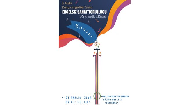 Kocaeli Büyükşehir Belediyesi’nin Engelsiz Sanat Topluluğu korosu 3 Aralık Dünya Engelliler Günü nedeniyle Çayırova Prof. Dr. Necmettin Erbakan Kültür Merkezinde konser verecek. Ücretsiz olacak konser halkımızın katılımına açık olarak düzenlenecek.