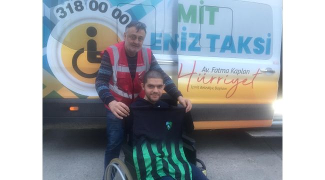İzmit Belediyesi Sosyal Destek Hizmetleri Müdürlüğü tarafından sosyal belediyecilik anlayışıyla hayata geçirilen engelsiz taksi, özel gereksinimi olan bireyler için hizmet vermeye devam ediyor. Engelsiz taksi hizmetinden yararlanan Hakan Arslan’a, taraftarı olduğu Kocaelispor forması hediye edildi.