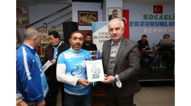 Programa katılanlara teşekkür eden Dernek Başkanı Avni Gözütok yaptığı konuşmada “Çenesuyu Hemşehri Dernekleri Futbol Turnuvası çok güzel bir şekilde gerçekleşti. Centilmenlik ön planda oldu. Bu sebepten dolayı emeği geçen belediye başkanımıza, komiteye, futbolcularımıza ve katkısı olanlara çok teşekkür ediyorum. Şampiyonlukta emeği geçen takım arkadaşlarımıza, bizleri destekleyen dadaşlara, dostlarımıza ve sponsor olan iş adamlarımıza ayrıca teşekkür ederim” diye konuştu. Derince Belediye Başkanı Zeki Aygün de yaptığı konuşmada turnuvanın dostluk ve kardeşliği pekiştirdiğini belirterek “Şampiyonluğa ulaşan Kocaeli Erzurumlular Derneği’ni Dernek Başkanımız Avni Gözütok nezdinde kutluyor, ayrıca turnuvada mücadele eden tüm derneklerimizi gönülden tebrik ediyorum” dedi. Çeşitli ikramların yapıldığı THM Sanatçısı Atilla Özdemir’in de sahne aldığı programda ayrıca dernek üyesi sporculara teşekkür belgeleri takdim edildi.