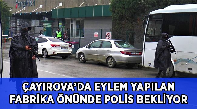 Çayırova ilçesinde bulunan Farplas fabrikasında işçilerin eylemi devam ederken, polis ekipleri fabrika önünde güvenlik önlemi aldı.