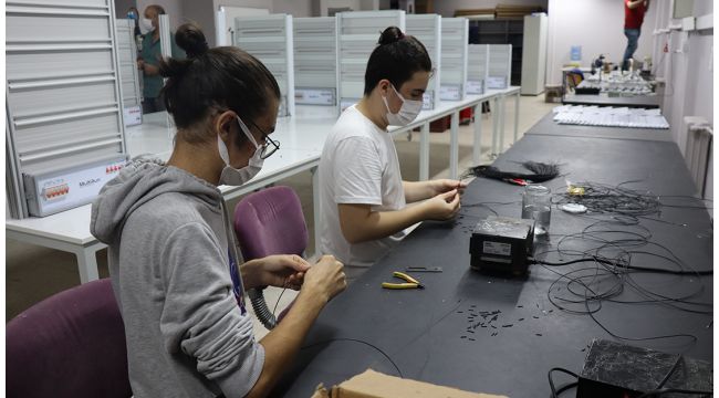 Pandemi sürecinde dezenfektan ihtiyacını karşılamak için okul bünyesinde kurulan atölyede yüzlerce ton hijyen malzemesi üretilen Kocaeli’nin Derince ilçesindeki Çınarlı Meslek ve Tekniki Anadolu Lisesi’nde, kollar bilim için sıvandı. Okulda yürütülen Ar-Ge çalışmaları kapsamında, kurulan atölyede okulların test kiti ihtiyacını gidermek için üretime başlandı. Tasarımları okul tarafından yapılan test kitleri, okulda kurulan atölyede öğretmenler ve öğrenciler tarafından üretilmeye başlandı. 3 aydır süren üretim çalışmaları kapsamında 10 okulun elektronik deney seti ihtiyacı karşılandı. Üretilen elektronik deney setleri, Türkiye’nin farklı şehirlerindeki okullara gönderiliyor. Atölyede çalışan öğrenciler ise hem kendilerini geliştirme fırsatı buluyor hem de döner sermaye kapsamında para kazanabiliyor. Okulda bir yandan da hijyen malzemesi üretimi ara vermeden devam ettiriliyor.