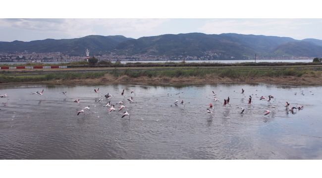 Körfez sahilinde bulunan Fener Gölü’nün misafirleri bu sene de flamingolar oldu.