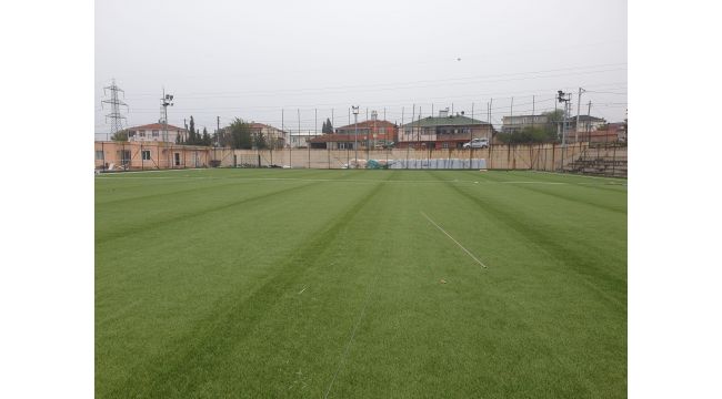 Yapı Kontrol Dairesi Başkanlığı ekipleri tarafından yapılan çalışma kapsamında eskiyen sentetik çim saha halısının sökümü yapıldı. Zemin iyileştirme çalışmasından sonra sahanın 3 bin 500 metrekarelik yeni sentetik saha halısı serildi. Yakın zamanda bitirilecek olan çalışmada şu an yapıştırma işleri gerçekleştiriliyor.