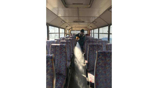 Gebze Belediyesi, virüs salgın riskine karşı alınan önlemler kapsamında halk otobüsleri dezenfekte ediliyor.