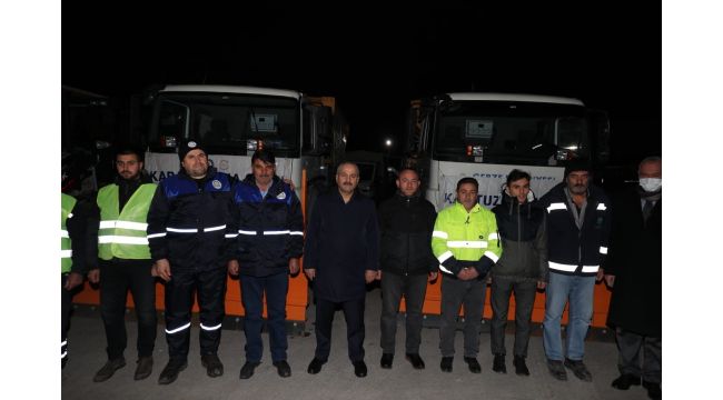 Gebze Belediyesi Fen İşleri Müdürlüğü bünyesinde oluşturulan karla mücadele ekiplerini ziyaret eden Başkan Büyükgöz, “Araçlarımızda kar lastiği veya zincir kullanalım. Acil bir durumda da Kriz Masası’nın 777 00 30 numaralı telefonunu arayarak 7/24 yardım talebinde bulunabilirsiniz” dedi.