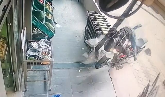 Kocaeli'nin Gebze ilçesinde sürücüsünün kontrolünden çıkarak direğe çarpan motosiklet, daha sonra takla atarak alışveriş merkezine daldı. Bir kişi saniyelerle ezilmekten kurtulurken, kaza anı güvenlik kamerasına yansıdı.Kaza, Gebze ilçesi Hacı Halil Mahallesi 1209. Sokak'ta meydana geldi. Edinilen bilgiye göre, hızla ilerleyen Murat O. yönetimindeki 34 UY 8731 plakalı motosiklet, virajı alamayarak kaldırımın üstüne çıktı. Ardından metal direğe çarpan motosiklet, takla atarak alışveriş merkezine daldı. Sürücü ve motosiklet farklı yerlere savruldu. Saniyeler öncesinde alışveriş merkezine giren bir müşteri ezilmekten son anda kurtuldu. Kazayı gören çevredeki vatandaşlar 112 Acil Çağrı Merkezine haber verdi. İhbar üzerine olay yerine sağlık ve polis ekipleri sevk edildi. Kısa sürede olay yerine gelen sağlık ekipleri, yaralıyı ambulansa alarak hastaneye kaldırdı.Kaza anı anbean iş yerinin güvenlik kamerasına yansıdı. Güvenlik kamerasında hızla gelen sürücünün virajı alamayarak kaldırımın üstüne çıktığı, metal direğe, ardından da takla atarak alışveriş merkezine daldığı anlar görülüyor. Ayrıca alışveriş merkezine giren bir müşterinin saniyelerle ezilmekten son anda kurtulduğu da görüntülere yansıdı.