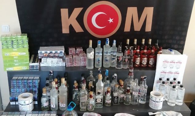Kocaeli'de polis ekiplerinin yaptığı üç farklı operasyonda sahte bandrollü içki, alkol yapımında kullanılan malzemeler, çok sayıda gümrük kaçağı sigara ve bir miktar uyuşturucu madde ele geçirildi.