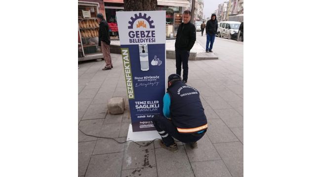 Gebze Belediye Başkanı Zinnur Büyükgöz'ün talimatları doğrultusunda Gebze'nin kalabalık noktalarına el dezanfektan otomatları konuldu.