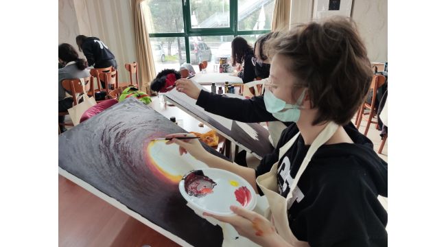 Öğrencilerin ellerinde renklenen tuvaller ise daha sonraki organizasyonlarda Gölcük Belediyesi tarafından sergilenecek.