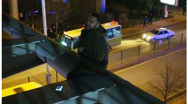 Kocaeli’de iddiaya göre sevgilisinden ayrılan şahıs, köprüye çıkarak intihara kalkıştı. Polis ekiplerinin uzun uğraşları neticesinde ikna edilen şahıs, alkışlar eşliğinde köprüden indirildi.