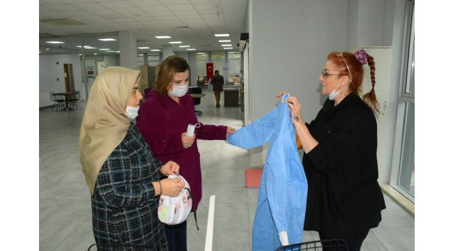 İzmit Belediyesi, koronavirüse karşı başladığı steril maske üretiminin ardından, şimdi de sağlık personellerinin karantinada kullanımı için bone ve önlük üretimini başlattı. Başkan Hürriyet’ten bu konuda destek isteyen sağlık personeli için, bugünden itibaren İzmit Belediyesi Dikimevi’nde bone ve önlük üretimi de başladı.