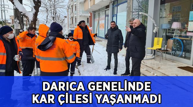 Darıca Belediyesi ilçede 4 gündür etkili olan kar yağışı sonrası karla mücadele çalışmalarına ara vermeden devam ediyor. Belediye Başkanı Muzaffer Bıyık, karla mücadele ekiplerinin kar yağışının hemen ardından başlattığı çalışmalar sonucu vatandaşların ulaşımda aksaklık yaşamasının önüne geçtiklerini belirtti. Başkan Muzaffer Bıyık, oluşturdukları kriz masası ile karla mücadele çalışmalarına en kısa sürede başladıklarını belirterek, kar yağışıyla birlikte tuzlama ve temizlik çalışmalarının hızla devam ettiğini kaydetti.