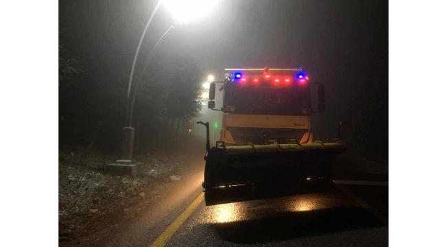 Kocaeli Büyükşehir Belediyesi Karla Mücadele ekipleri, dün gece itibariyle etkisini göstermesi beklenen kar yağışı öncesinde, ilimizin rakımı en yüksek noktası olan Kartepe zirve yolunda nöbetteydi. Muhtemel kar yağışının yolda buzlanmaya sebep olarak araçların kaymasına sebep olmaması için sabaha kadar nöbet tutan ekipler, kentimizin önemli turizm merkezi Kartepe zirve yolunda yol açma ve tuzlama çalışmaları yapmak için bekledi.