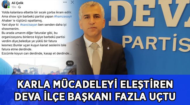 Gebze Bölgesi’nde etkili olan kar yağışı ve tipi de Belediye Başkanları başarılı bir sınav verdi. Başta Kocaeli Büyükşehir Belediye Başkanı Tahir Büyükakın olmak üzere, Gebze, Darıca, Dilovası ve Çayırova’da Belediyeler ulaşımı aksatmamak için gece gündüz çalıştılar. Bu nedenle Kocaeli’de sorun çıkmadı. İstanbul gibi metropol de yaşanan soruna rağmen, Kocaeli kar mücadelesini başarıyla atlattı. Ancak Kocaeli’de bu başarılı mücadeleyi çekemeyenler oldu. Bunlardan birisi de Deva Partisi Dilovası İlçe Başkanı Ali Çelik oldu. Çelik, tır sürücülerine gıda ulaştıran belediye Başkanı Hamza Şayir’i eleştiren ifadeler kullandı. Çelik’e göre Şayir’in bu davranışı şov yapmaktı.