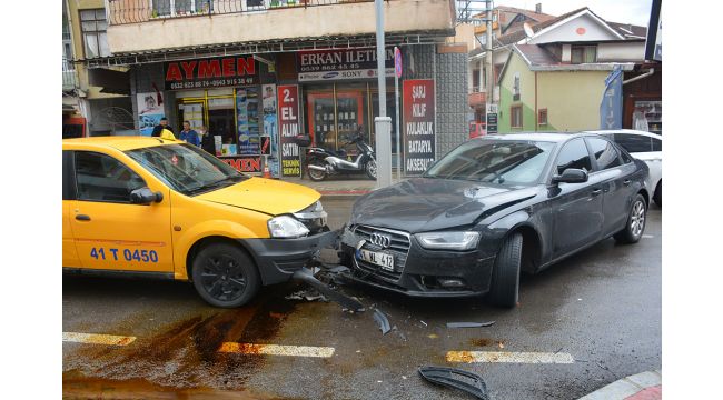 Kaza, İzmit ilçesine bağlı Bağdat Caddesi’nde meydana geldi. Edinilen bilgiye göre, M.M. idaresindeki 41 T 0450 plakalı Dacia marka ticari taksi ile Yetiş Atmaca idaresindeki 41 NL 412 plakalı Audi marka otomobil, yağmurun etkisiyle kafa kafaya çarpıştı. Kazanın ardından caddeye otomobillerden yağ sızdı. Olayı gören vatandaşlar durumu 112 Acil Çağrı Merkezi’ne ihbar ettiler. İhbar üzerine olay yerine sağlık ve polis ekipleri sevk edildi. Kazada aldığı darbeyle hafif yaralanan taksi şoförü M.M’nin ilk müdahalesi olay yerinde yapıldı. Caddeye dökülen oto yağı ise önce vatandaşlar sonra da belediye ekipleri tarafından temizlendi.